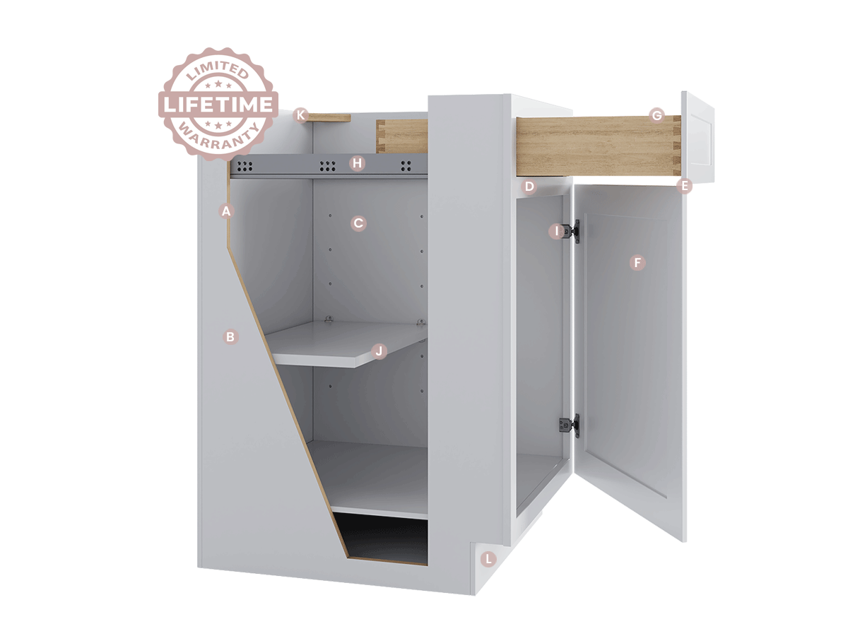 RTA is an acronym for Ready To Assemble. RTA cabinets are flat packed, saving space and shipping costs. You can assemble and install them yourself with a basic toolkit. RTA cabinets are considerably cheaper than assembled cabinets.
